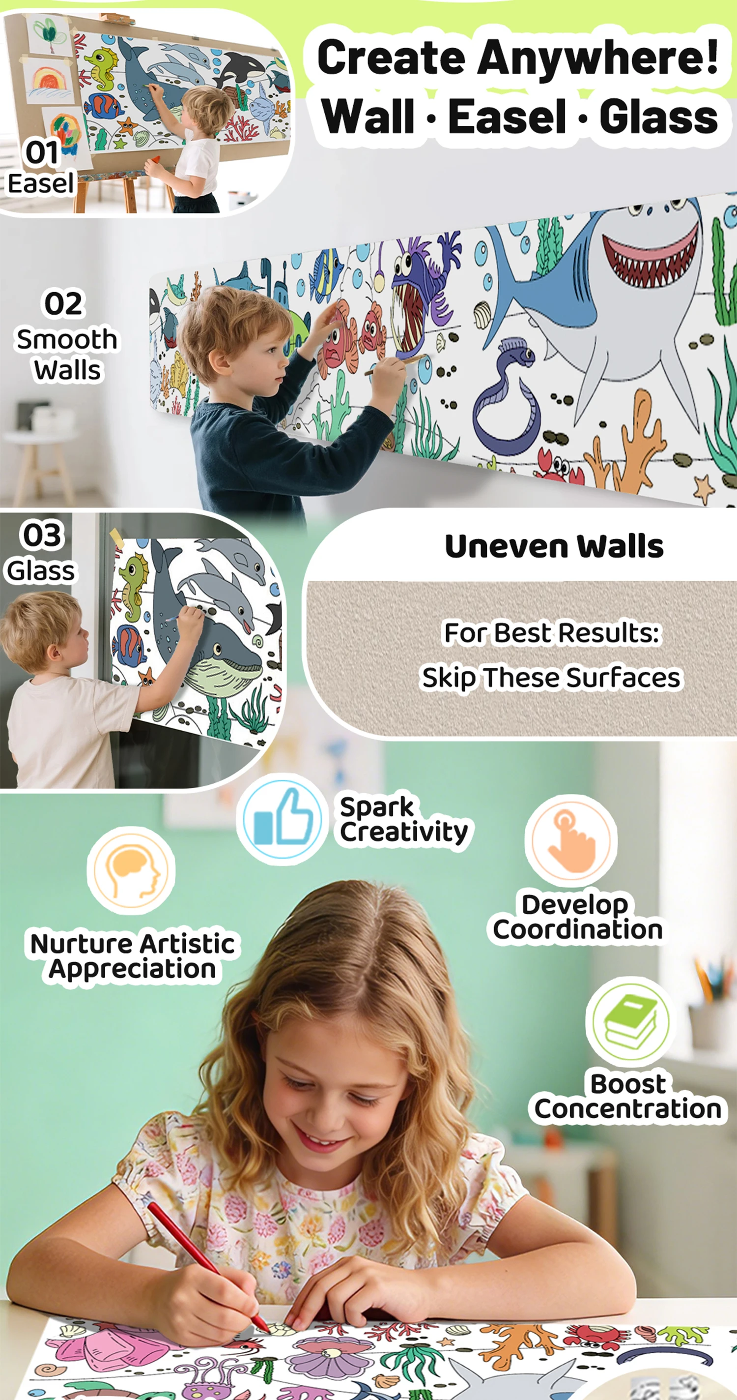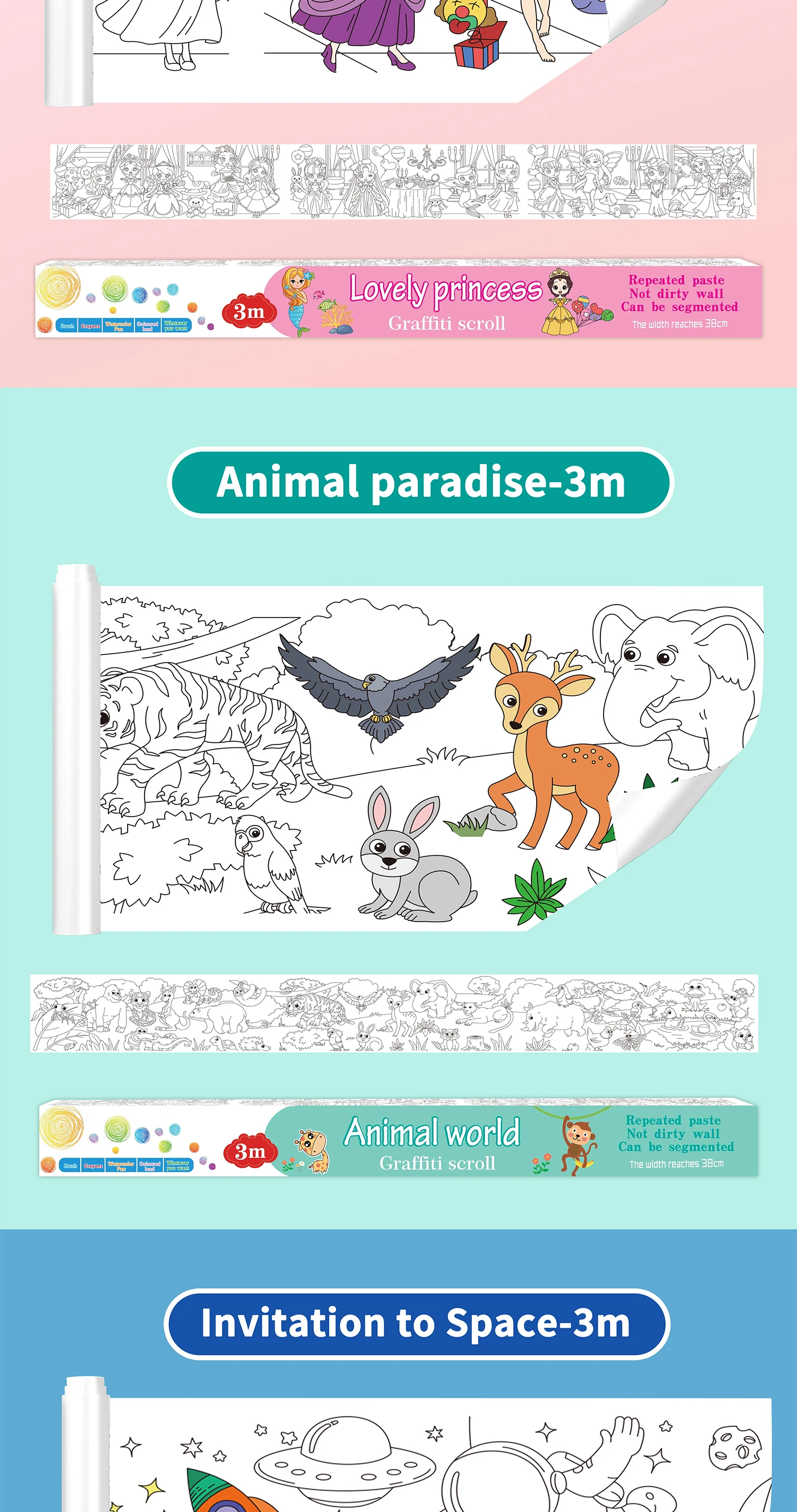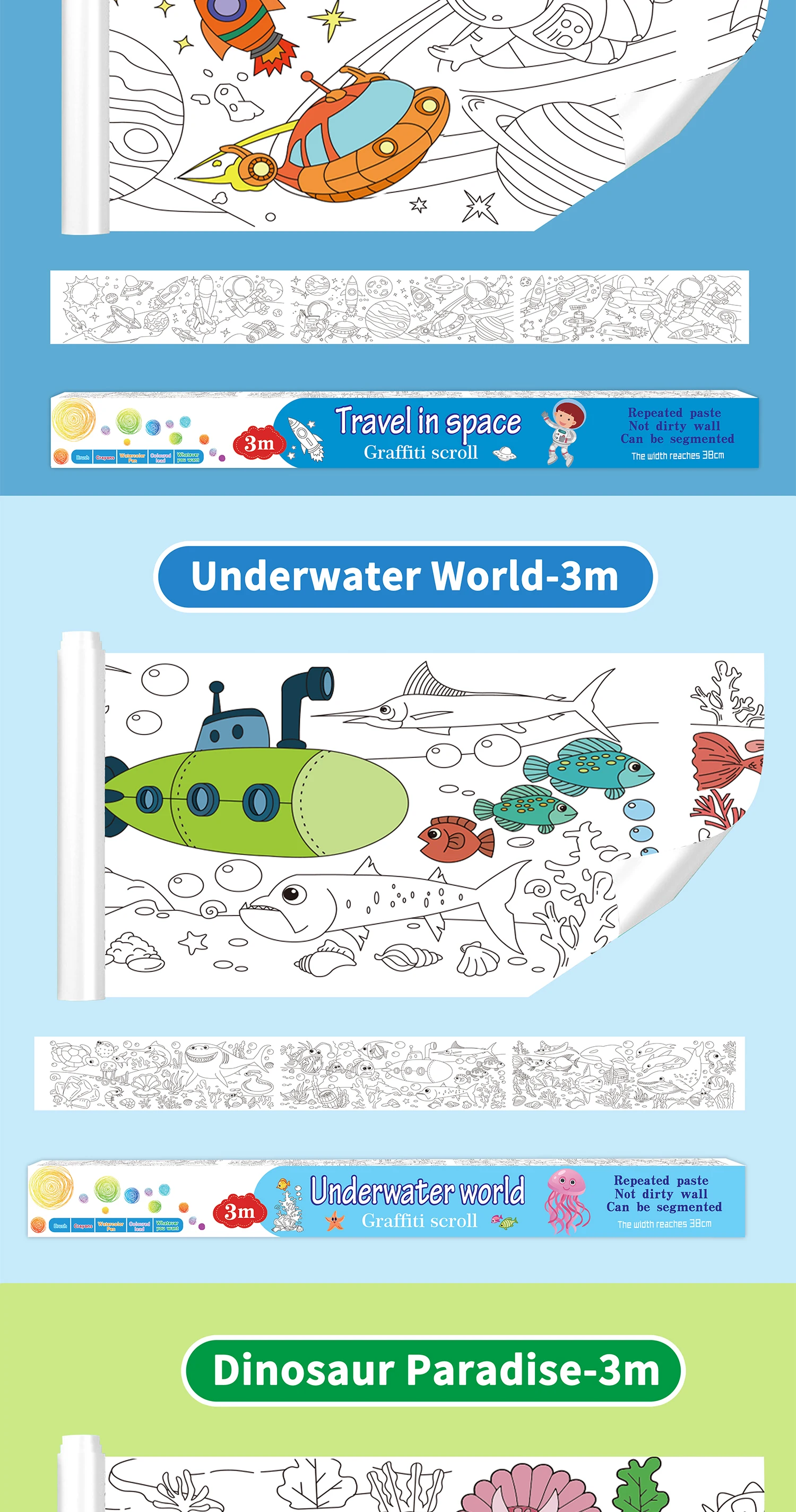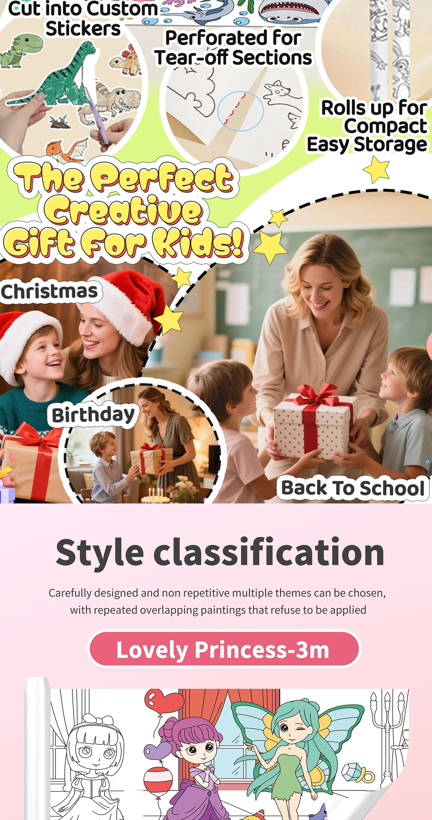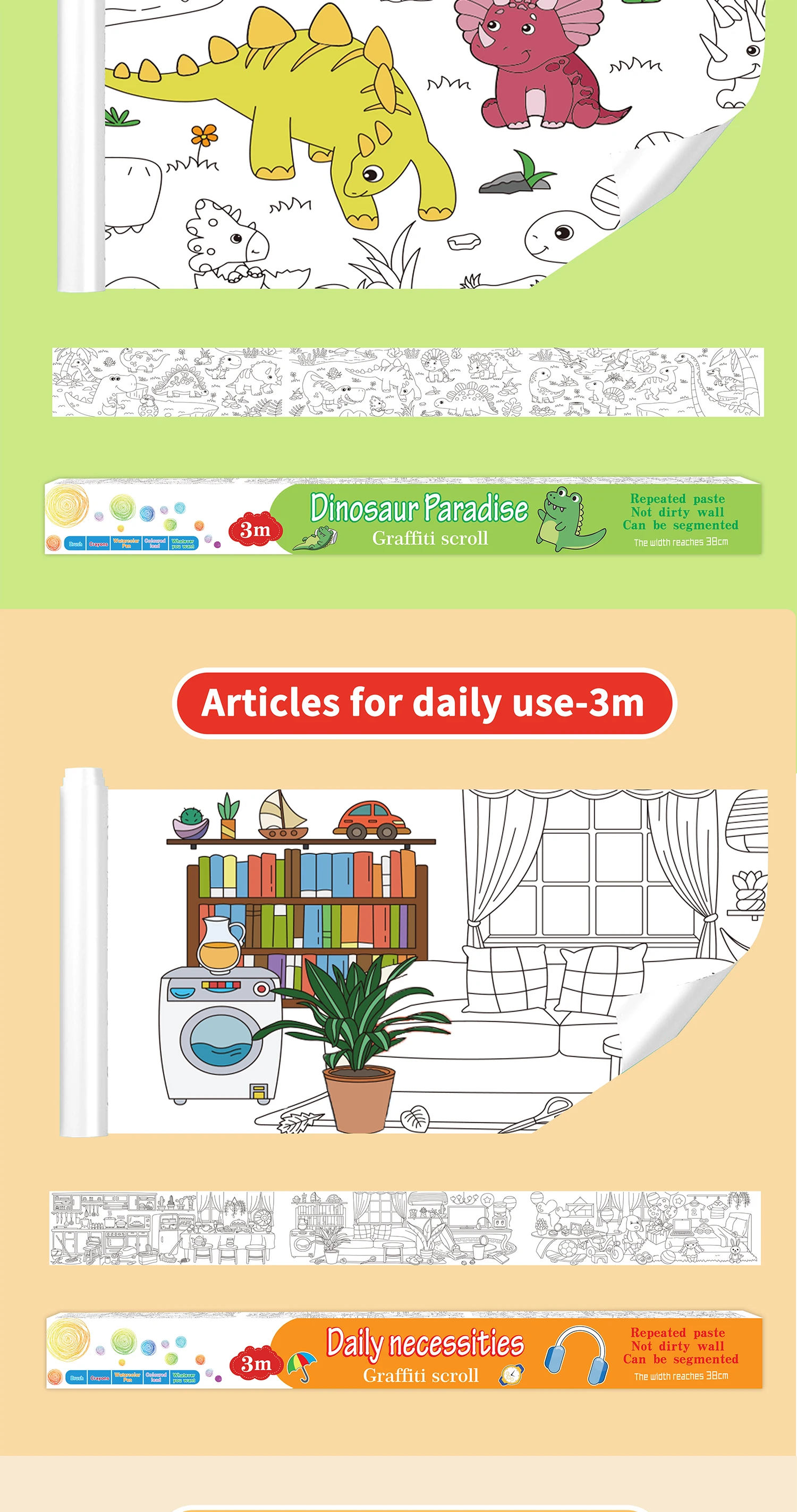 118 ” X 15 ” Sticky Giant Coloring Rolls for Kids, Perforated for Easy Tearing, DIY Paper Roll, Drawing Roll Paper for Kid