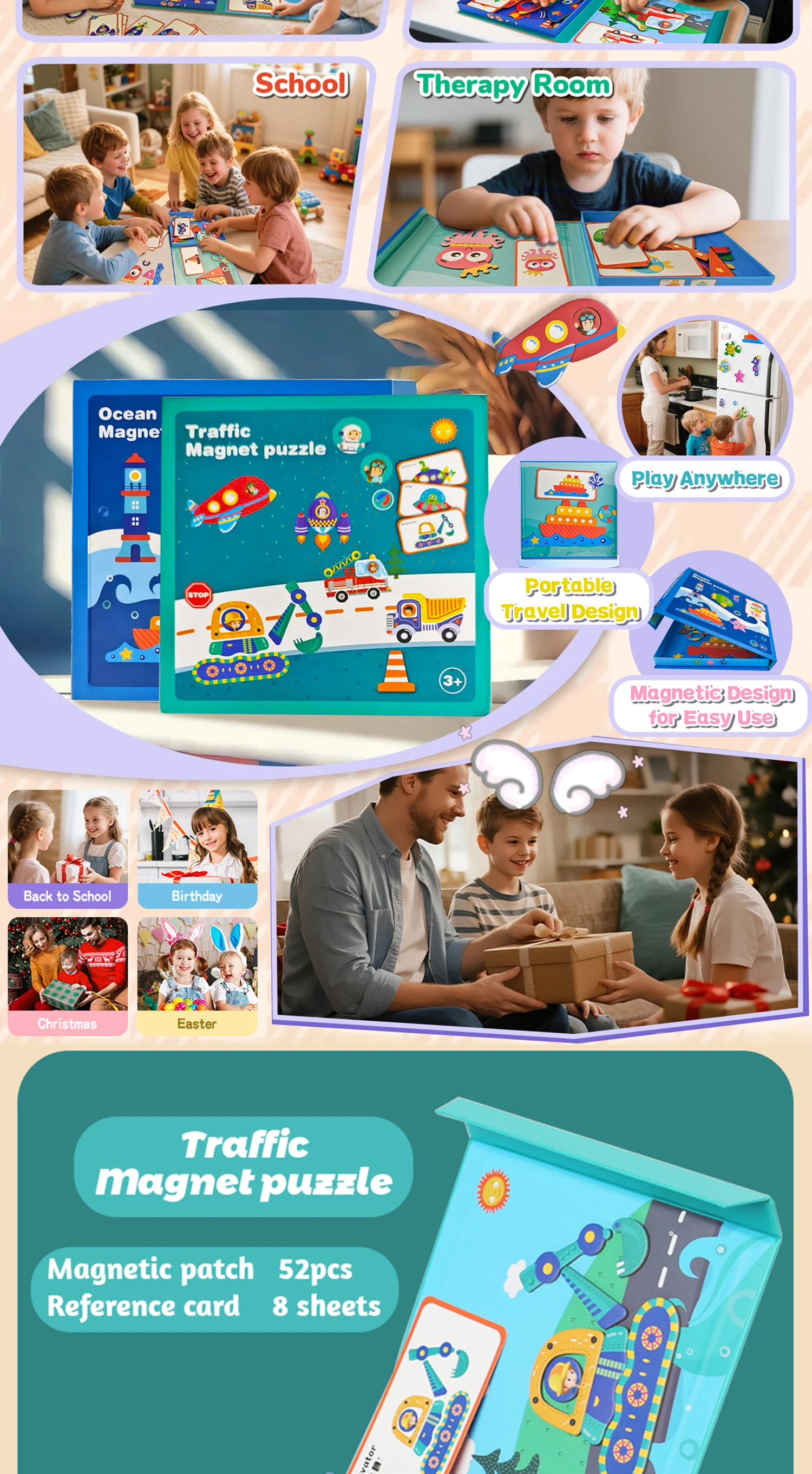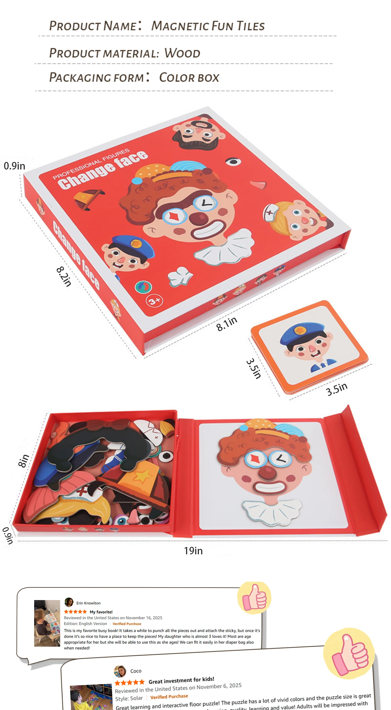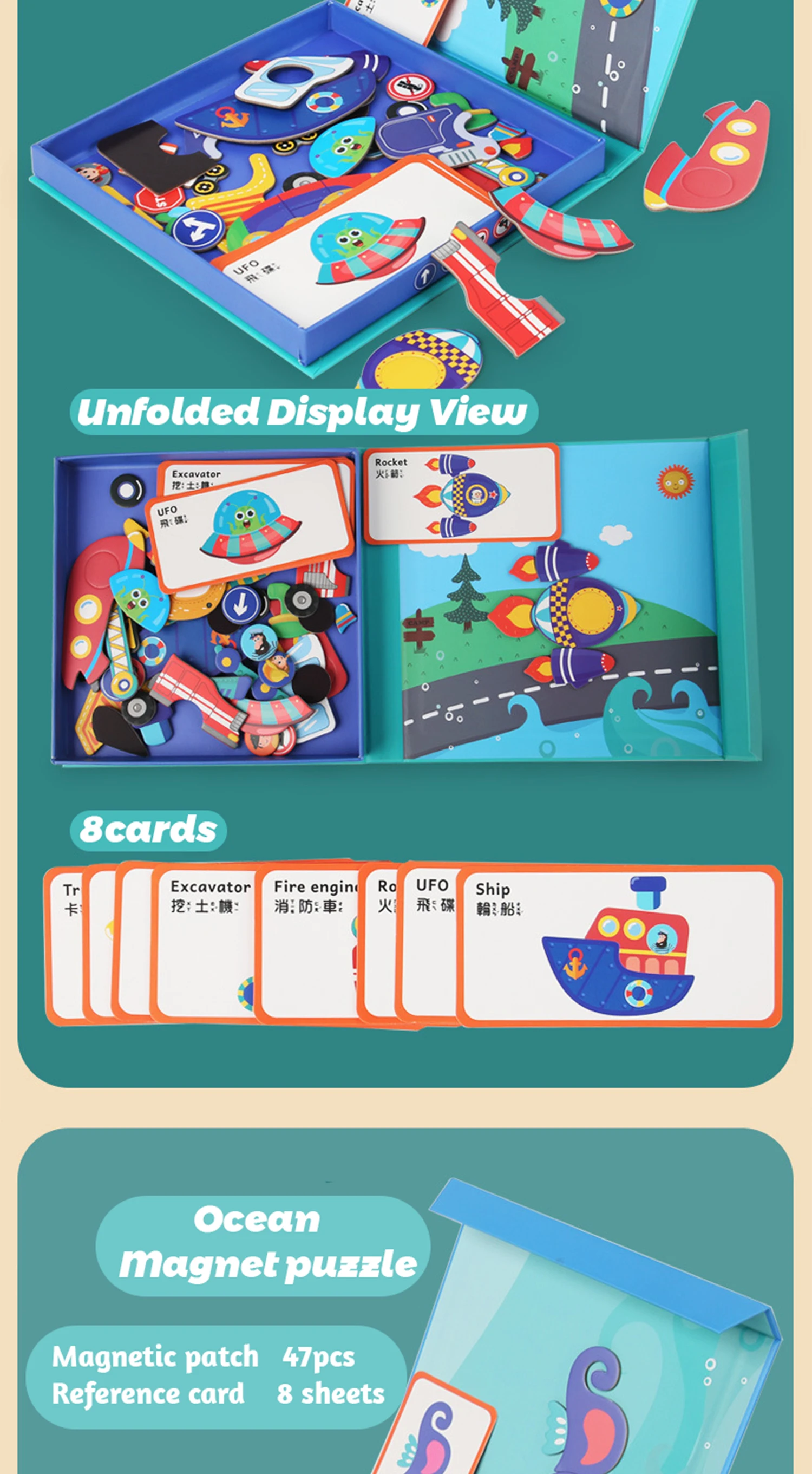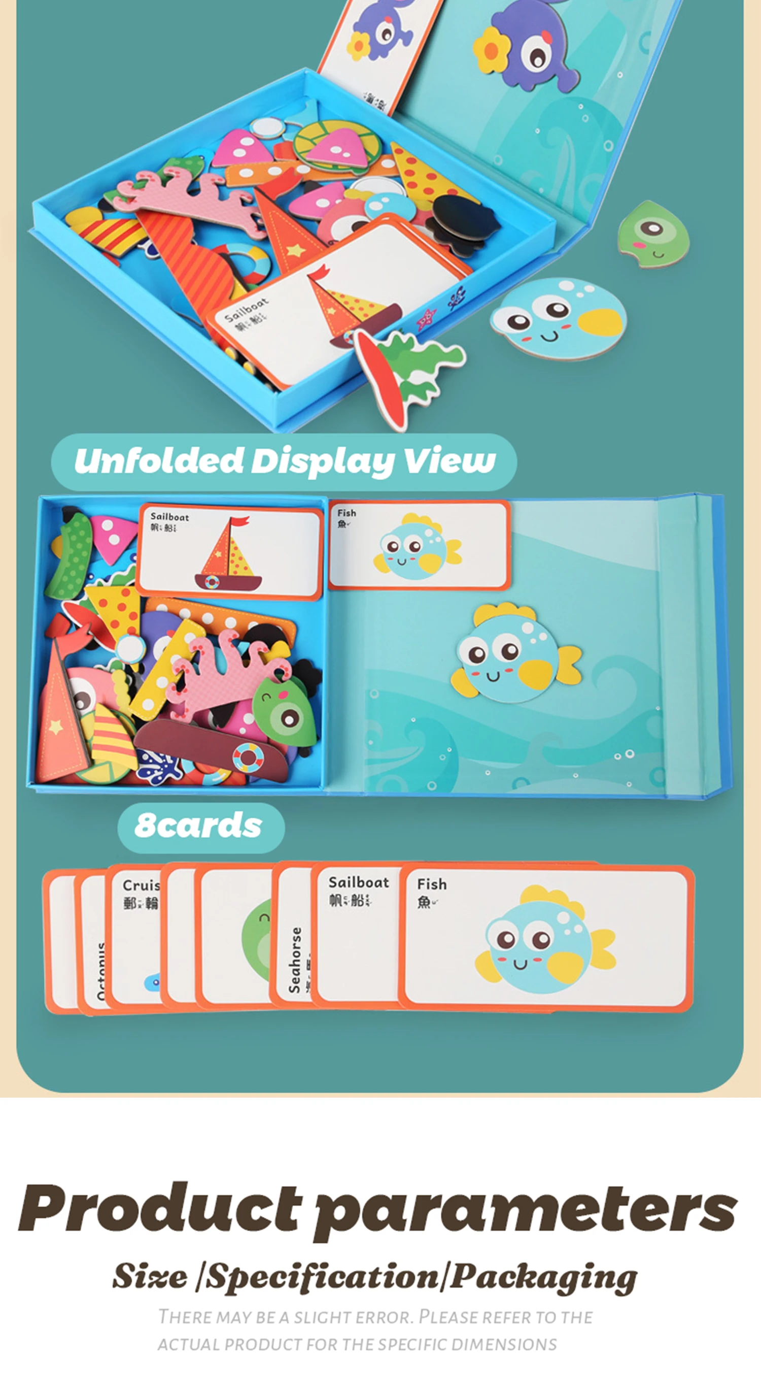 16 Self Magnetic Matching Puzzle for Toddler with Metal Board & Portable Box, Correcting Matching Puzzle for Toddler