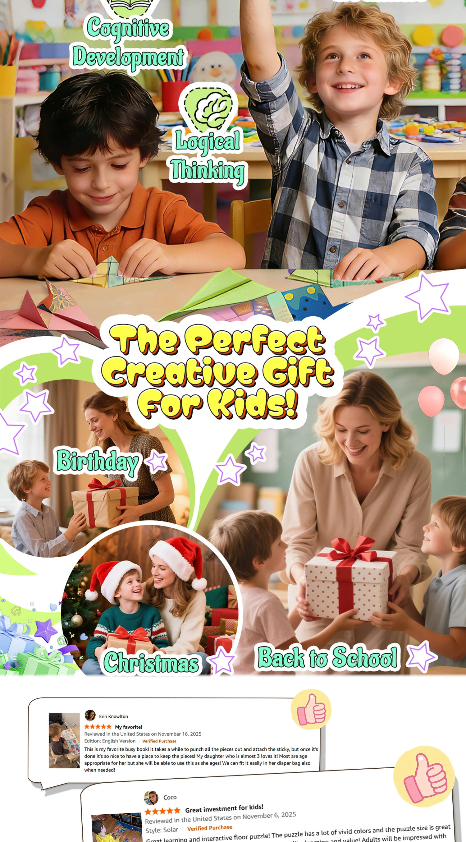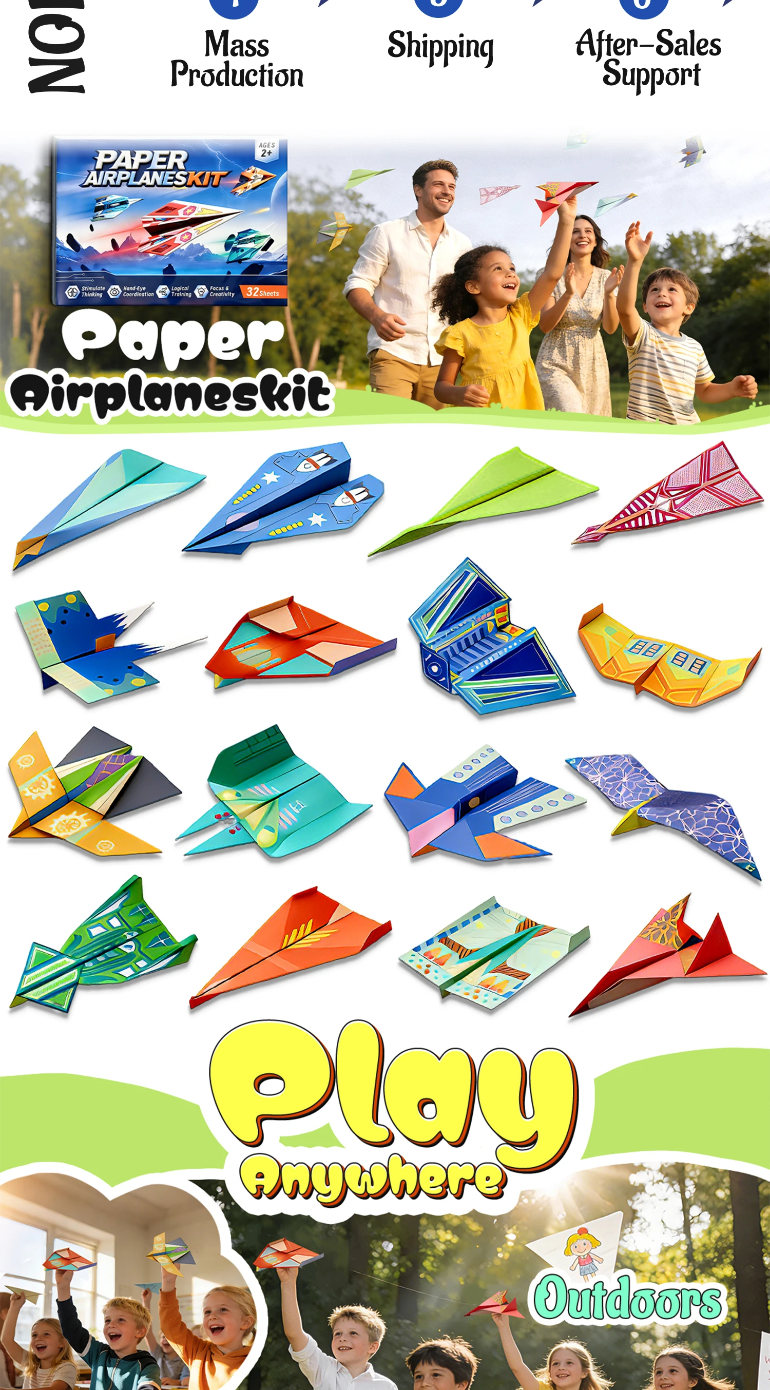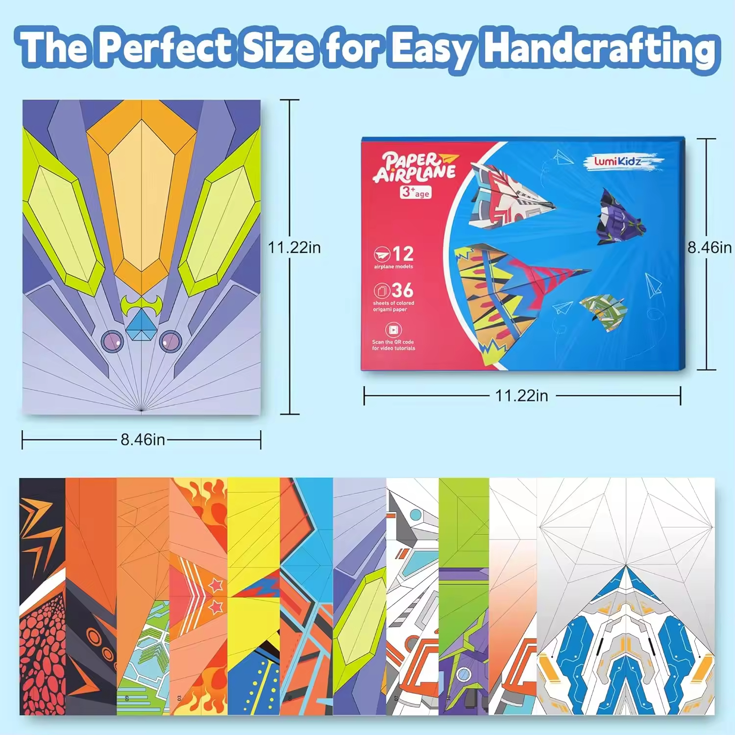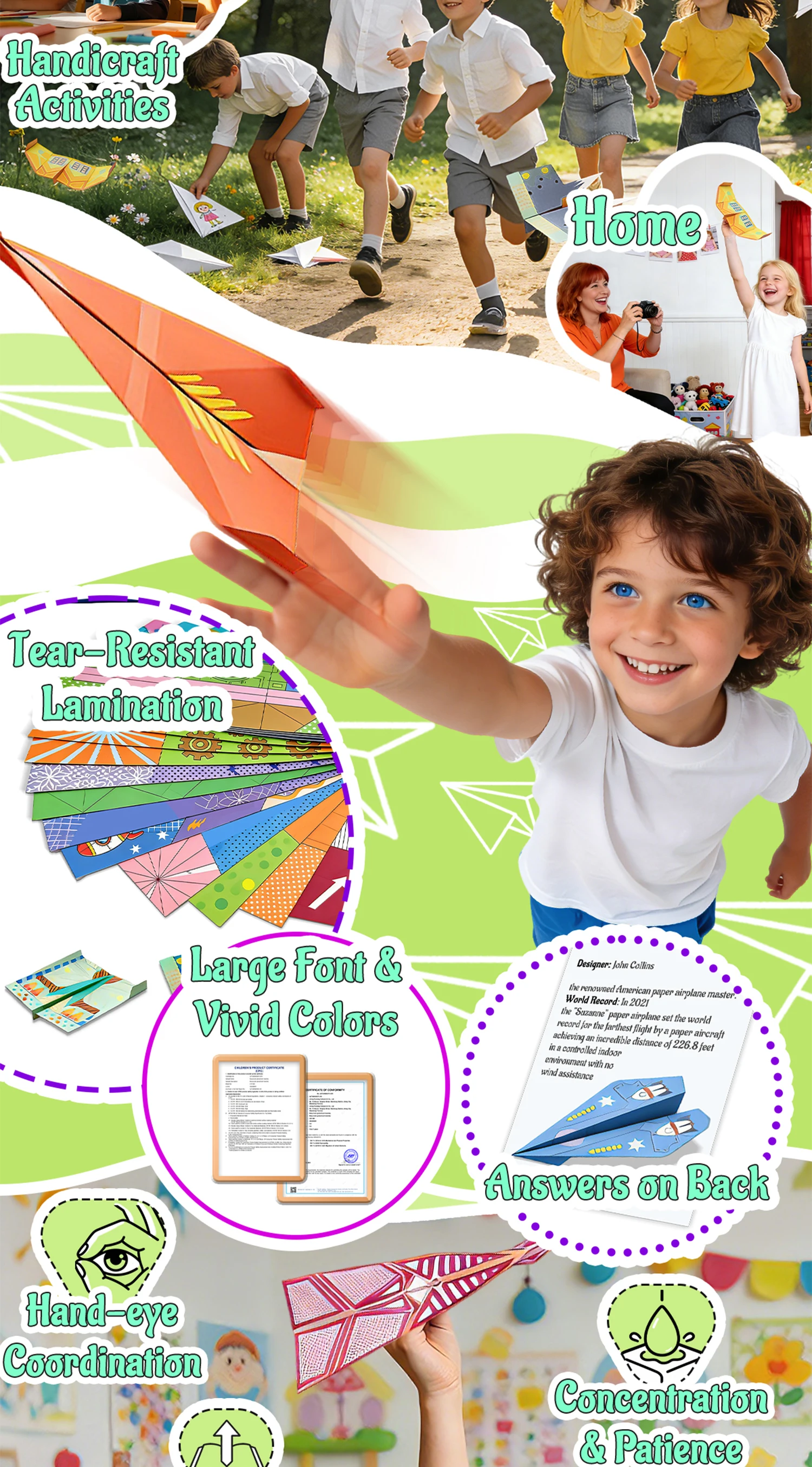 Colorful Origami Paper Airplane Kit for Kids with 16 Classic Designs, Creative Fold and Fly Toddler Crafts Plane