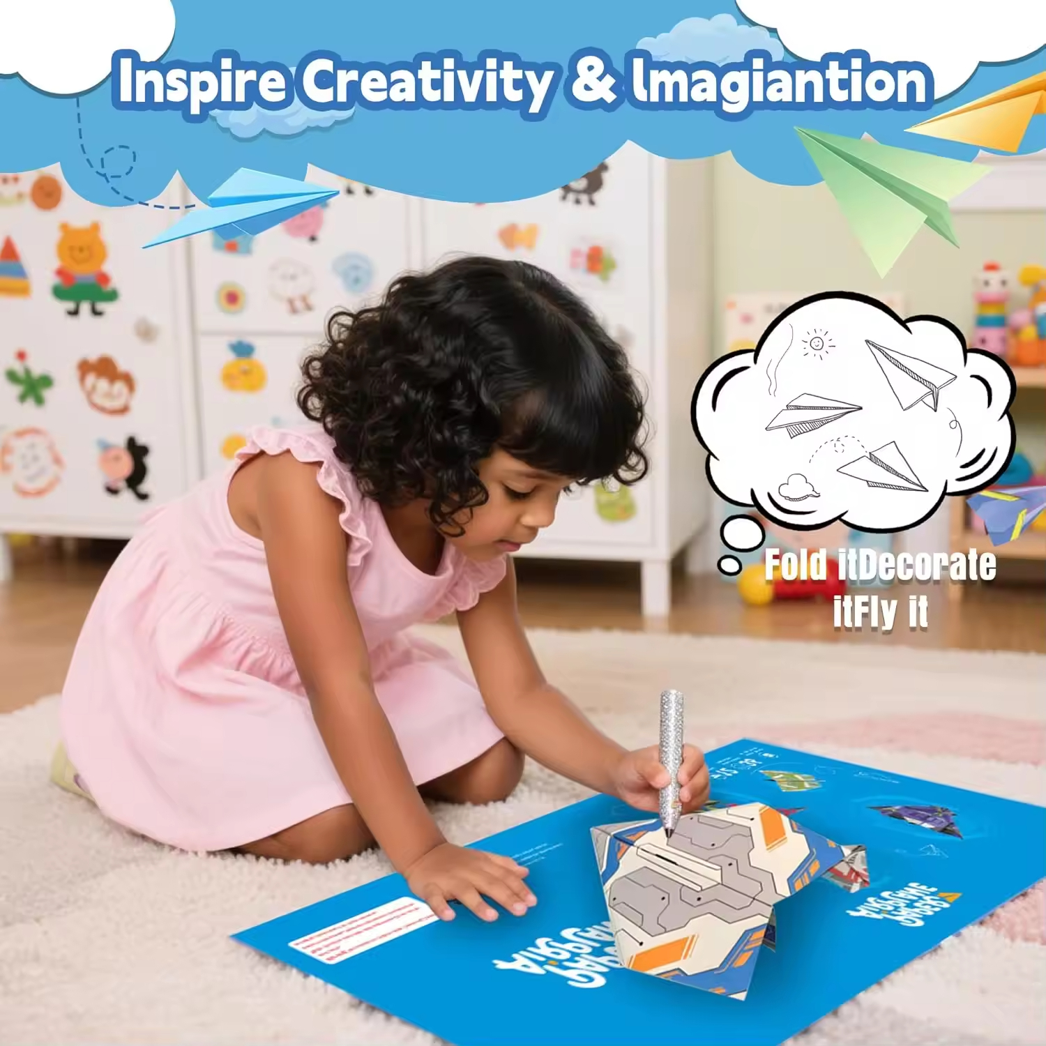 Colorful Origami Paper Airplane Kit |